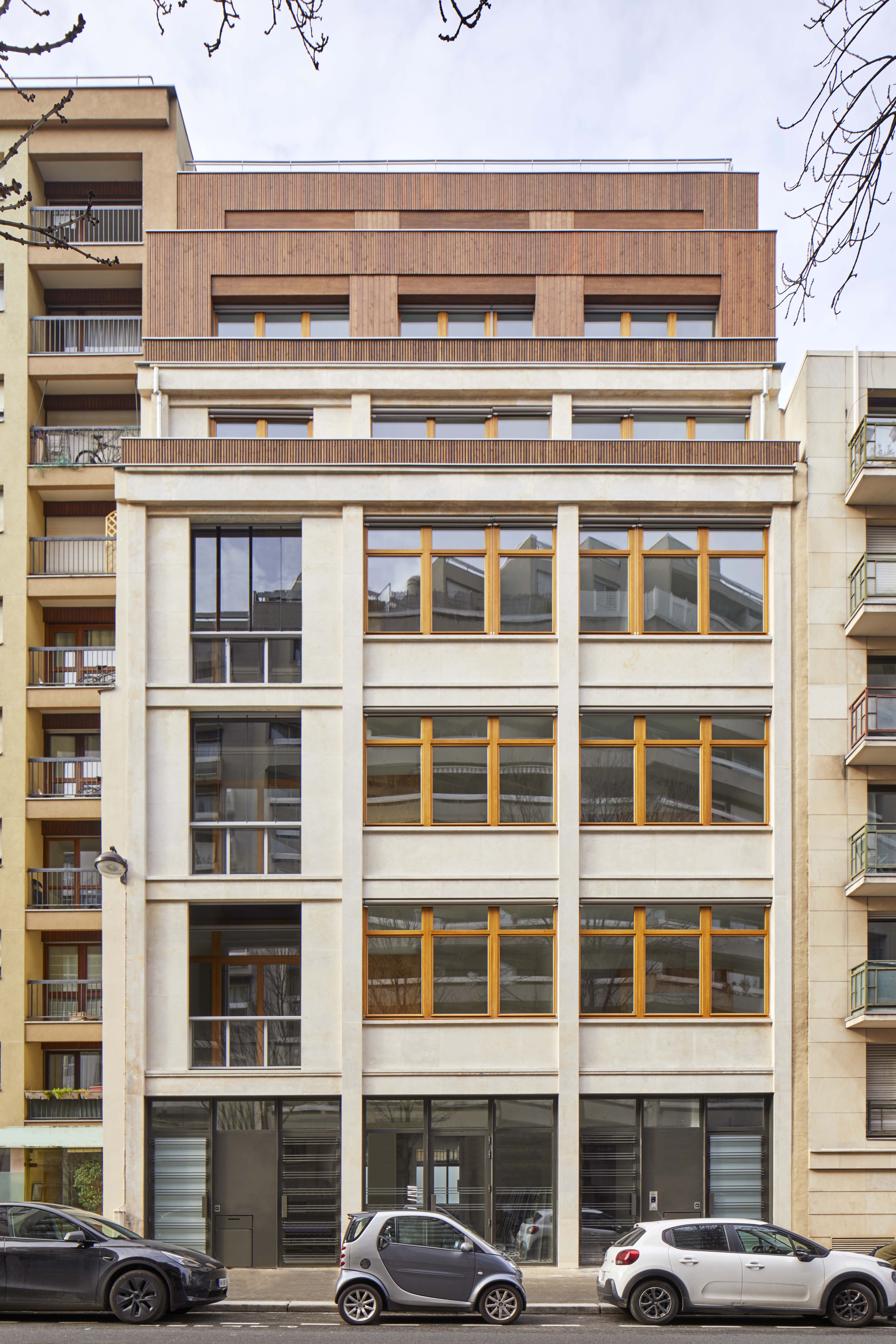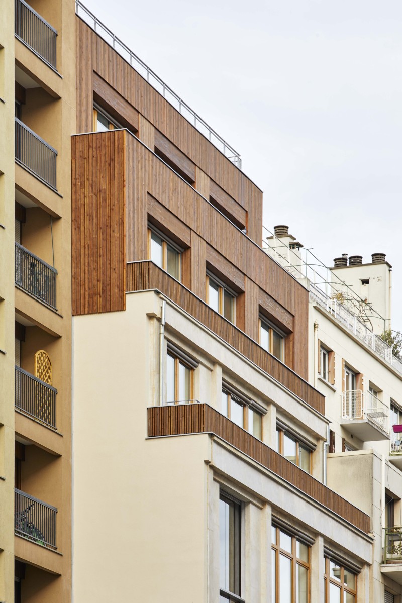 “Transforming the existing structure while building on it to highlight its history; proposing a new, sustainable architectural design that showcases wood; and designing high-quality housing that takes advantage of the unique character of the existing volumes these are the values that guided this transformation, renovation, and addition project located at 44 Rue de l’Amiral Mouchez in Paris’s 14th arrondissement.