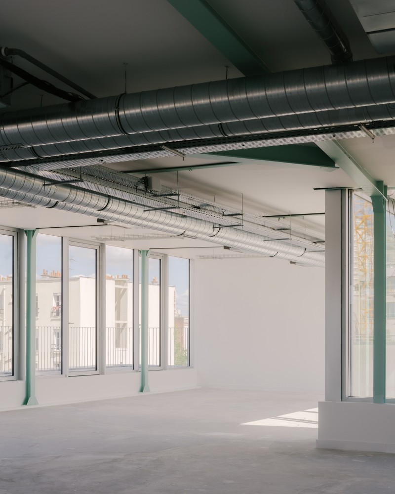 Dans le fond de parcelle, le projet s’attache à conserver les structures caractéristiques des espaces productifs (halle et shed), et la générosité des volumes qu’elles procurent, tout en maitrisant les conditions climatiques pour permettre de nouvelles activités. Les systèmes constructifs, une fois mis en valeur, donnent une lisibilité aux différents espaces et génèrent des ambiances propres à chaque époque du site.