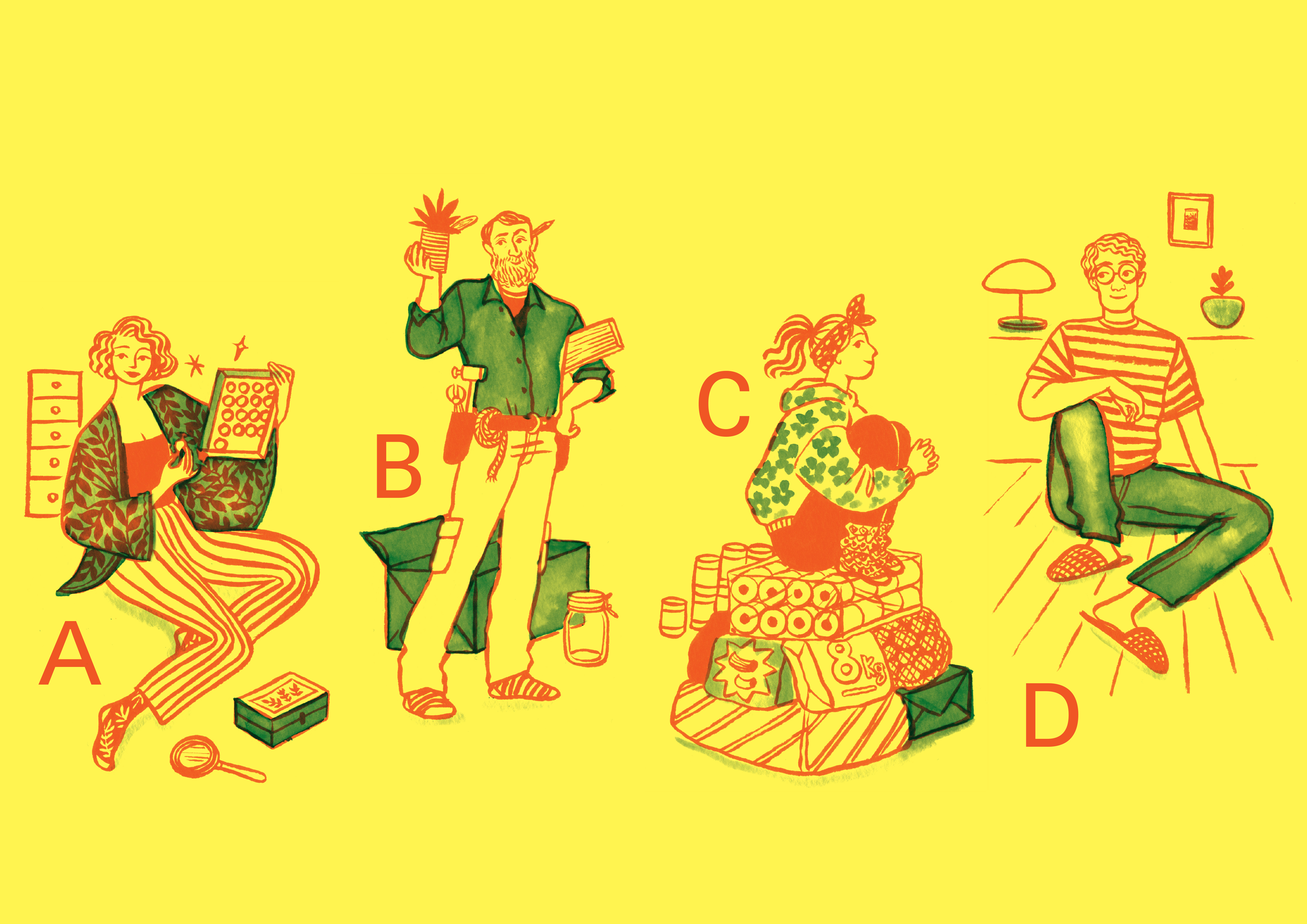 Conçu avec l'aide de la psychologue Sophie André, et accompagné des illustrations d'Éloïse Heinzer, ce quiz vous invite à découvrir quel type de stockeur·euse vous êtes : collectionneur·euse, bricoleur·euse, survivaliste, moderne.